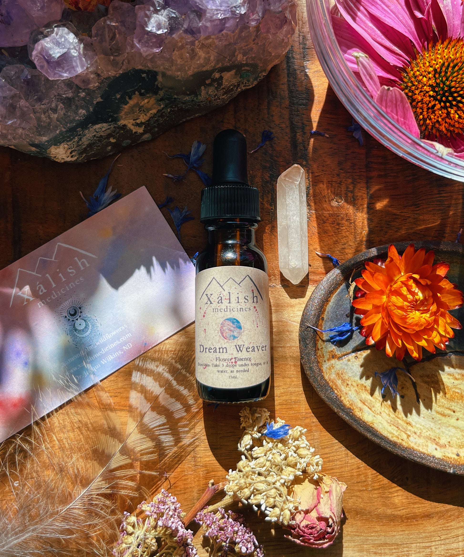 *Flower Essences are a vibrational medicine, they typically do not contain physical constituents of the Plant. They contain the patterns, energy, imprints of the Plant suspended in Nibi/Chúush/Water.