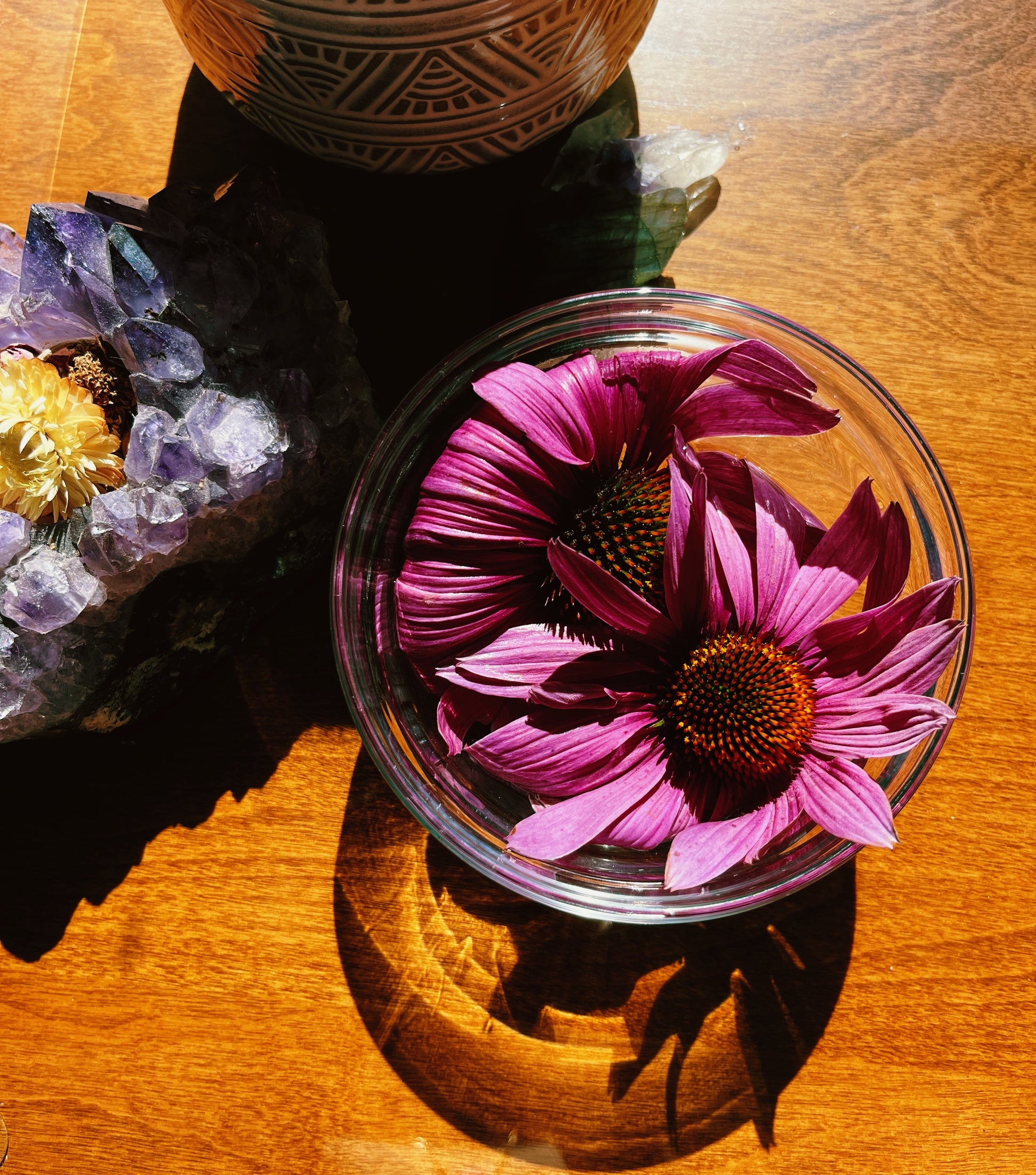 We may look to Echinacea to help fortify us, to resource us, to help us rebuild, while also amplifying our inner protection. They are beautiful Medicine for discernment, for strengthening our intuition & ability to discern. For remembering the wisdom we carry in our own bodies. Healing patterns of feeling disconnected from ourselves & Creation.