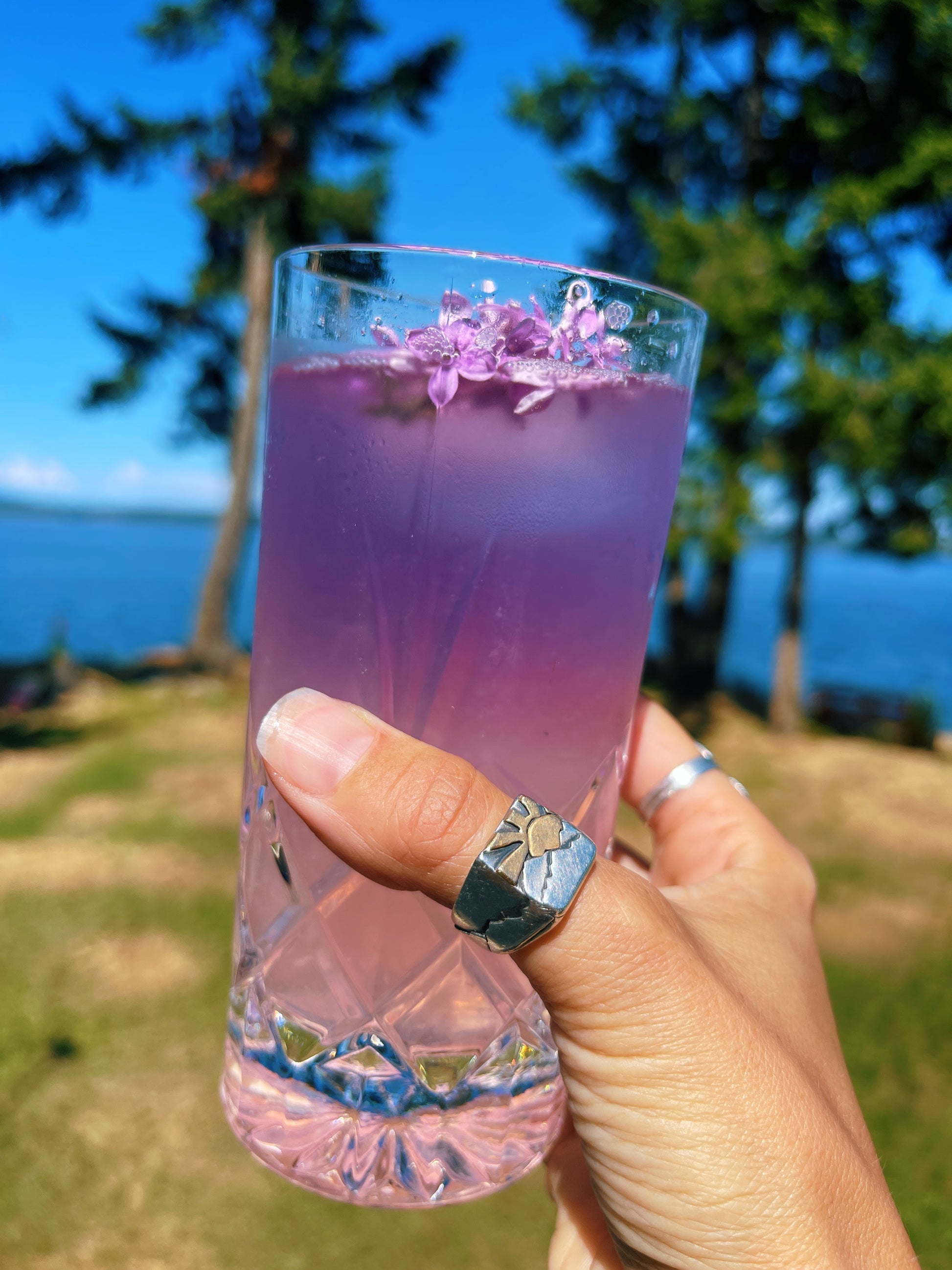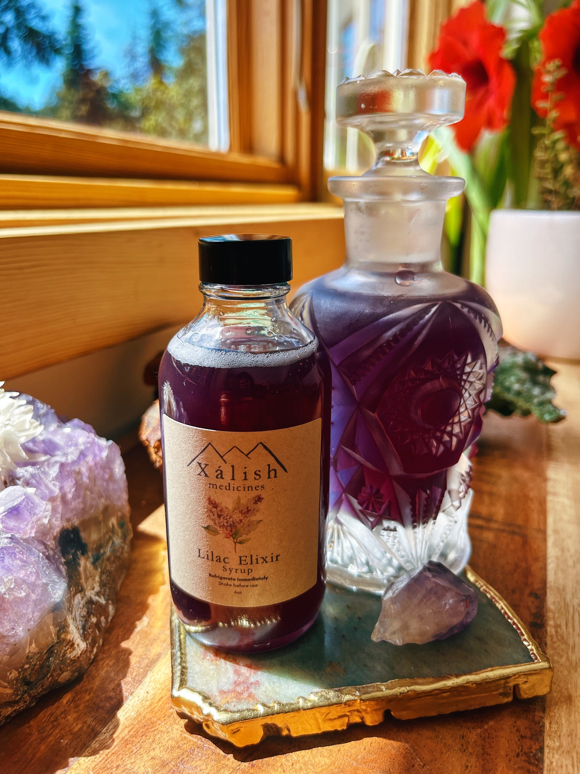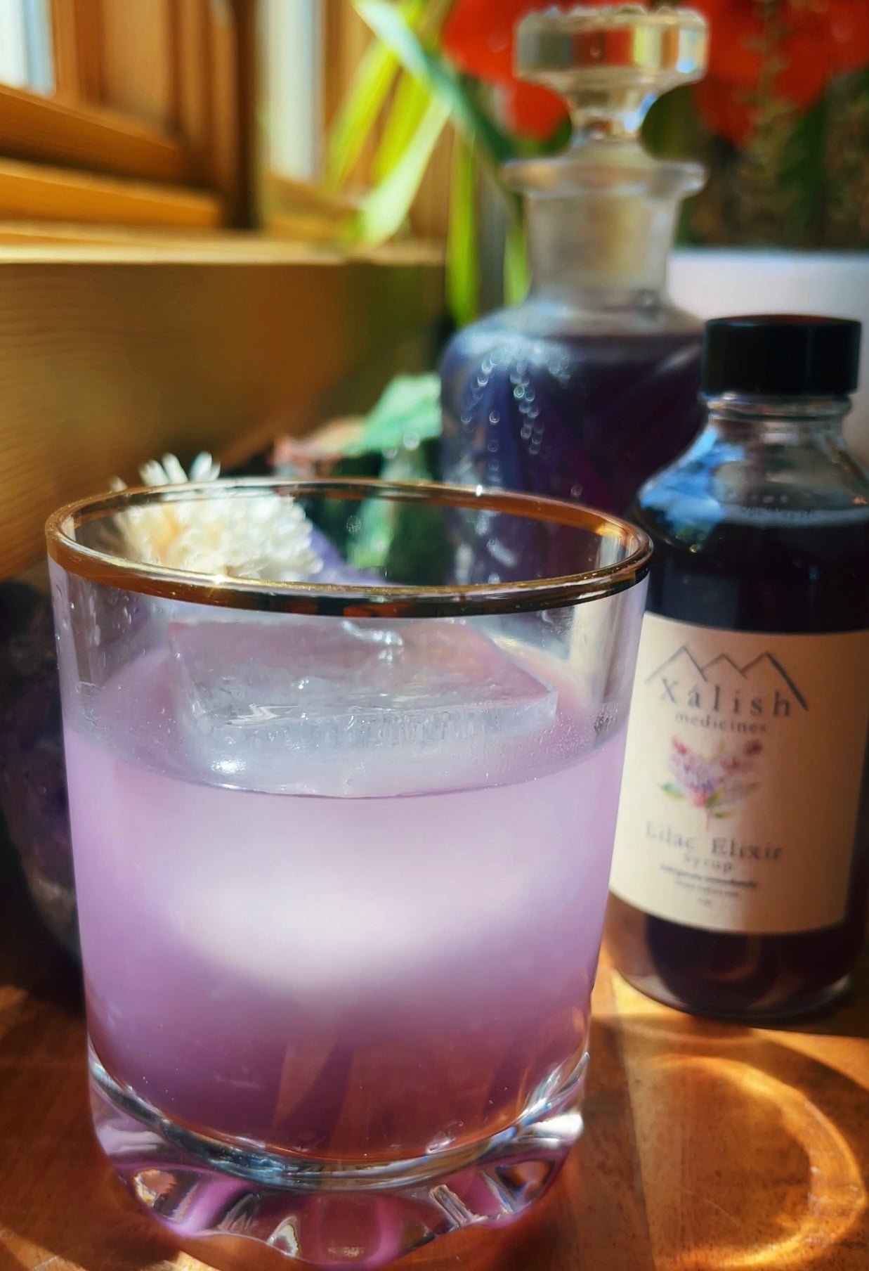 This gorgeous Lilac elixir tastes how you would think a Lilac syrup would taste, it embodies Lilac so beautifully! Subtle, yet floral & sweet. I really love how it turned out, and especially the colour with added Blue Butterfly pea flower for some colour changing magic when an acidic liquid is added to the syrup (like Lemon :)). *Comes in bottle shown in 3rd photo with Xálish label