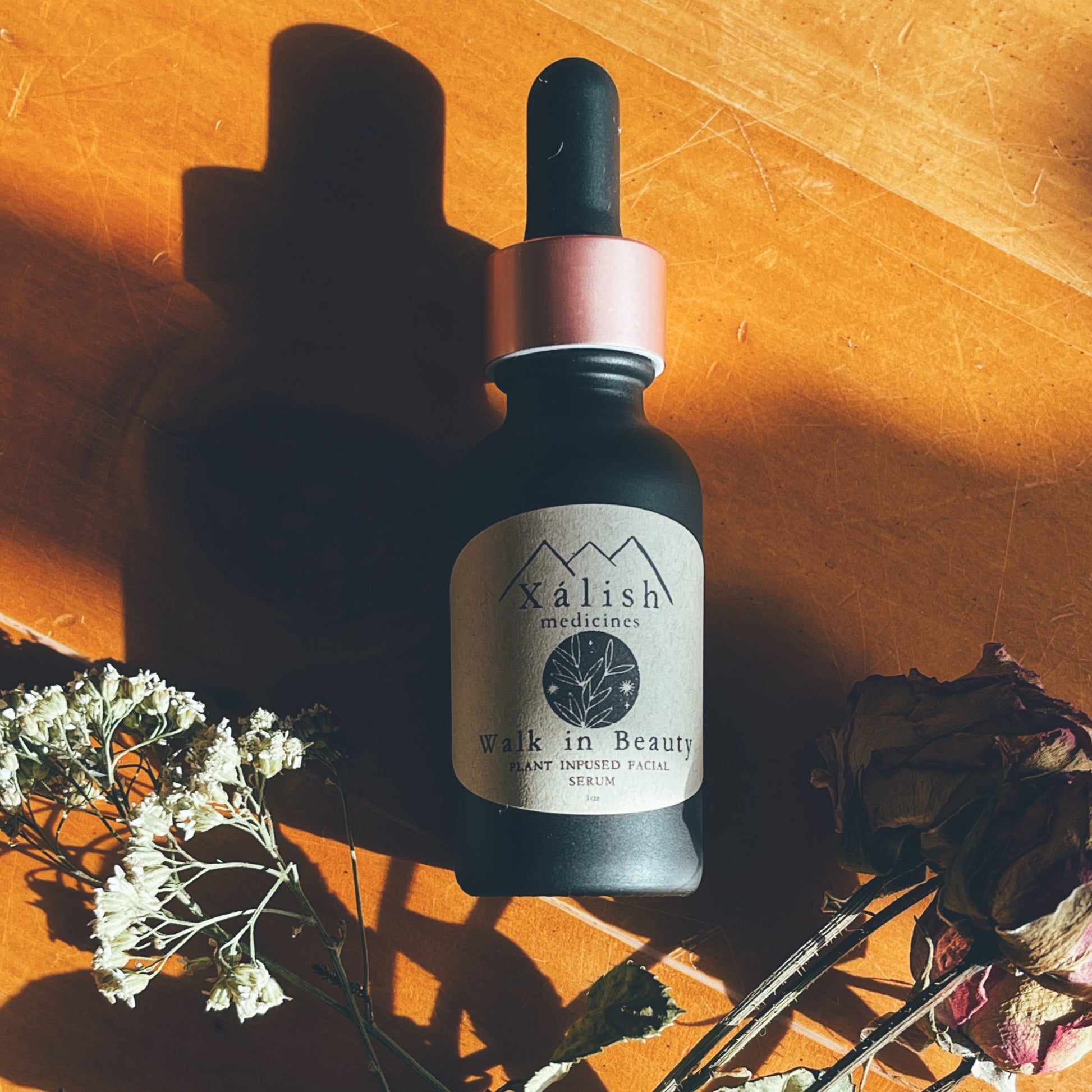 A magical blend that began infusing at the peak of Summer. With Plants from the Medicine garden, small herb farms & resins. A blend of Gotu Kola, Burdock, Holy Basil & gifted Myrrh resin. With oils of Jojoba, Sweet Almond, Carrot Seed, Sunflower, and Sea Buckthorn. This serum is luxurious, and deeply revitalizing to the skin. I'm so glad to have it back in my personal collection for Winter!