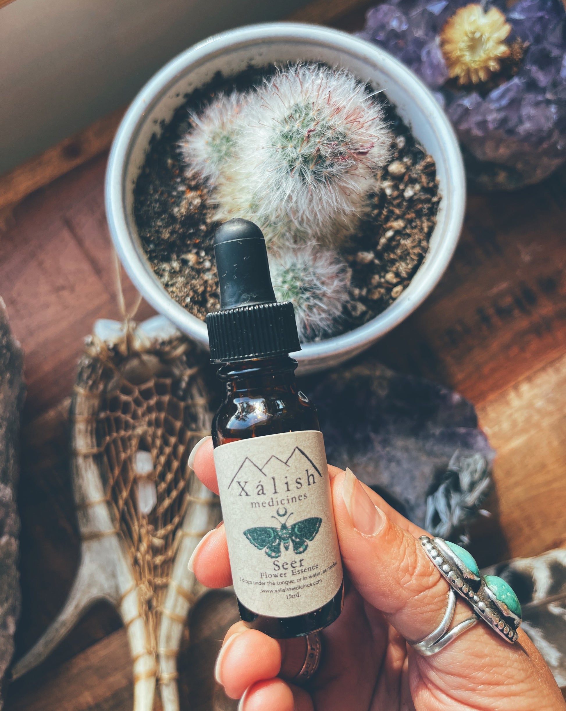 Seer flower essence is a beautiful blend of Plant & Gem essences to guide us in weaving the seen + unseen realms. To help us vision, not only for personal visioning, but for visioning harmonious ways forward, rooted in Harmony, for all of Creation.
